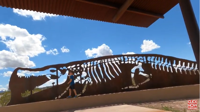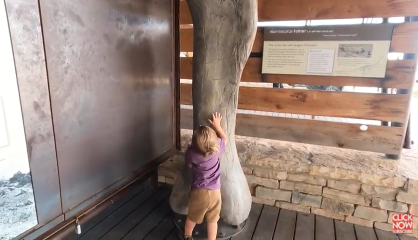 Two-year-old running wild in national parks is going to be fun. So this is the fossil discovery exhibit, and apparently, there were dinosaurs found here. So we're going to see what they found 5 million years ago.