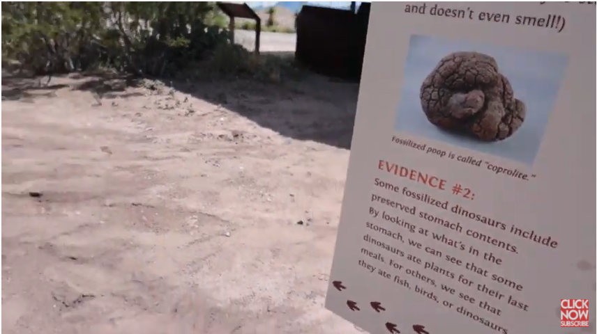 So if you decide to come to the dinosaur fossil exhibit, there is a little bathroom here that you can check out. And it smells pretty decent. Little trough right there. And I believe this is a composting toilet. It's just a big hole hand sanitizer, but it gets the job done. Fossilized poop is called Coprolite. Do you want to tell mom? She's full of Coprolite. Okay, I'm coming—diaper changing time. Becket's got some Coprolite.